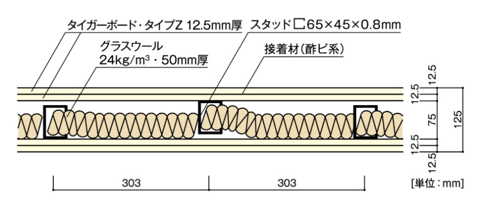 グラスウールの入る耐火遮音壁です